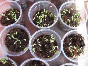 Je kunt de bloei aanzienlijk versnellen, als je je toevlucht neemt tot de zaailingsmethode. Vul in maart-april alle geschikte containers met een licht grondmengsel, morst de grond, strooi de zaden op het oppervlak, knijp zachtjes met uw palm, morst opnieuw uit de gieter, dek af met een film en laat het rusten in de hitte totdat de spruiten naar boven komen. Na een week, verwijder de film, zet de containers in het licht, terwijl de drie echte bladeren verschijnen - je kunt ze in aparte huizen duiken, complexe meststoffen worden niet te actief in ongeveer anderhalve week gevoed.