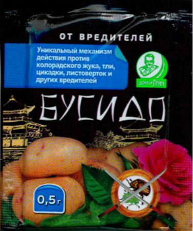 Een van de voorbereidingen is Bushido van de coloradokever uit Colorado. Instructies voor gebruik zeggen dat dit het nieuwste insecticide is voor de uitroeiing van de meest "niet gedode" op het pad van zomerbewoners en tuinders van insecten. "Bushido" heeft een schadelijk effect op zowel larven als volwassen kevers.