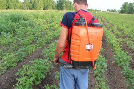 De bereide oplossing moet in de spuittank worden gegoten. Verwerkingsbedrijven moeten gelijkmatig en voorzichtig worden uitgevoerd en proberen aan de onderkant van de bladeren te komen om het hele aardappelveld volledig te besproeien.