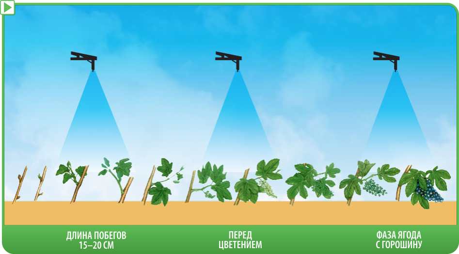 - 7 Verwerking van druiven in het voorjaar na het oplossen van de knoppen en het verschijnen van gebladerte