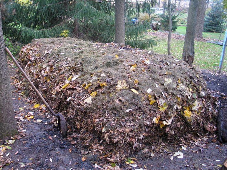 - Gebladerte. Droog het grondig voor gebruik. Anders zullen de bladeren klonteren. Meng ze met ander plantenafval en leg het vervolgens in een dunne laag.