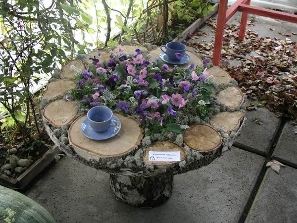 Een creatief begaafde tuinman verliest niets tevergeefs op de boerderij, hij kan schoonheid maken van alles op zijn perceel - de buren zullen jaloers zijn! Ze hakken bijvoorbeeld een overbodige oude boom om en in plaats van schijnbaar overbodige takken weg te gooien, zou de tuinman zo'n prachtige tafel van snijwonden bouwen - een kopje koffie in de ochtend aan zo'n bloementafel is gewoon schoonheid en eenheid met de natuur!