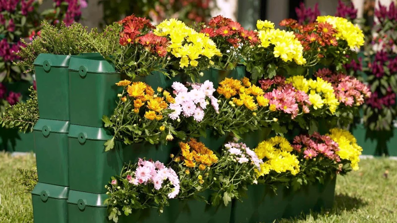 Creëer een verticale bloementuin met behulp van de containers die geen fantasie vereisen, op de meest betaalbare manier. Koop ze in elke winkel. Het blijft om de dozen op te hangen, met aarde te vullen en de planten te planten.