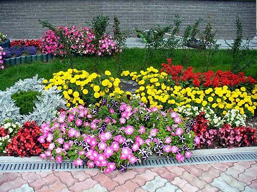 2. Planten voor één bloembed worden geselecteerd met vergelijkbare zorgparameters: vereisten voor vochtigheid, de hoeveelheid zonlicht en regelmatig water geven.