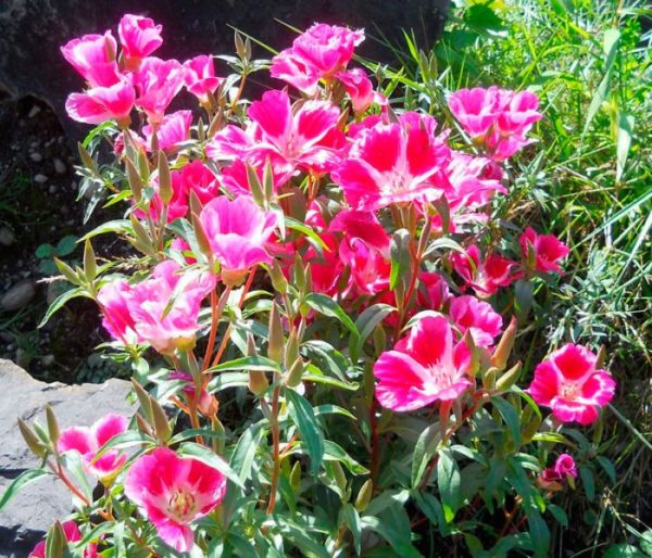 De bloemen van godetia behoren tot lineair lancetvormig en de plant zelf behoort tot de familie van cipressen. Dit is een eenjarige plant die bestand is tegen vorst en koude met een rechte, vertakte stengel. Struiken kunnen de vorm hebben van een piramidale of uitgestrekte vorm. De bloemen zijn overvloedig, lijkend op azalea, rozerood van kleur met een badstof of glad oppervlak. Ze zien eruit als knoppen, die doen denken aan klokken met een bloeiwijze van 5-10 cm groot.