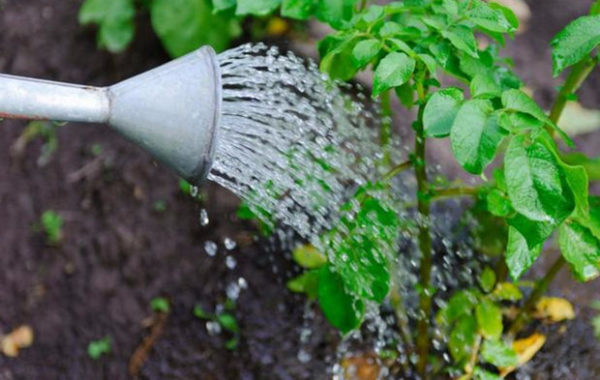 - Aardappelen worden tijdens het seizoen 3 keer gevoerd. De eerste keer voeden ze planten met ammoniumnitraat, gemengd met humus, voordat ze worden opgekweekt. Tijdens de vorming van knoppen wordt een kalium-topdressing gemaakt, bestaande uit gemengde as met kaliumsulfaat.Om de knollen beter te laten rijpen, is het noodzakelijk om, nadat de bloemen zijn gevallen, superfosfaatmeststoffen toe te voegen gemengd met bepaalde verhoudingen met koeienmest.