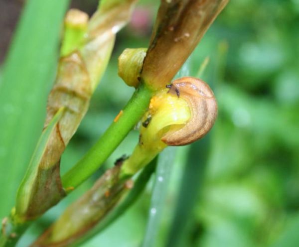 - irisvlieg - voor haar eten is dit geen knop die nog niet tot bloei is gekomen, wat leidt tot zijn dood, voor preventie: "Actellik" of "Aktara";