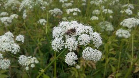 Van half juni tot begin juli bloeit het wiet en neemt het een uitgesproken parapluvorm aan, bedekt met kleine witte bloeiwijzen. Zodra de bloembladen rondvliegen, worden in plaats daarvan kleine afgeplatte witte vruchten zichtbaar.