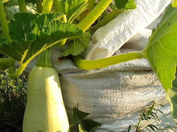 Courgette - planten zijn groot en nemen veel ruimte in de tuin in. In dit artikel zal ik je vertellen hoe je ruimte kunt besparen en tegelijkertijd grote en smakelijke courgettes kunt laten groeien. Om dit te doen, heb je grote zakken suiker of bloem en verschillende organische resten nodig. Bijvoorbeeld: gemaaid gras, onkruid, plantenresten, bladeren, exclusief boomtakken.