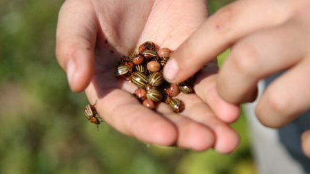 Deze gestreepte plaag kwam naar ons vanuit het Amerikaanse continent, dus het heeft geen natuurlijke externe vijanden. In de zomer legt het vrouwtje tot een half duizend eieren in kleine porties van 20-25 stukjes, waarvan oranje larven uitkomen, in staat om het gebladerte van de plant waarop ze twintig dagen van haar leven zitten volledig te vernietigen. Statistieken zeggen dat het verlies van een plant met een derde van het aantal bladeren leidt tot een daling van de opbrengst met een kwart. Het lijkt erop dat hij het ongedierte op de site heeft aangepakt en men zich kan verheugen, maar de hoop op een volledige verlossing van het ongeluk is ongegrond, omdat kevers, die tientallen kilometers vliegen op zoek naar voedsel, steeds weer op aardappelen verschijnen. Dus de strijd tegen dit insect moet continu worden gevoerd.