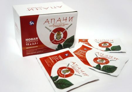 Het werkt op het zenuwstelsel van ongedierte en doodt ze. Het medicijn beschermt planten gedurende een maand vanaf de dag van behandeling. Voor het verwerken van 200 m² één zakje, zonder de verpakking te openen, wordt in één liter water gegooid. De zak lost samen met de inhoud in enkele minuten op.