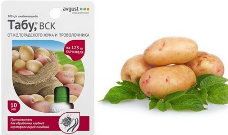 Met deze behandeling wordt 'Tabu' opgenomen in de knol en verspreidt het zich naar jonge scheuten. De coloradokever, die jonge spruitjes eet, krijgt een dosis gif en sterft. Verwerking beschermt aardappelen gedurende 45 dagen.