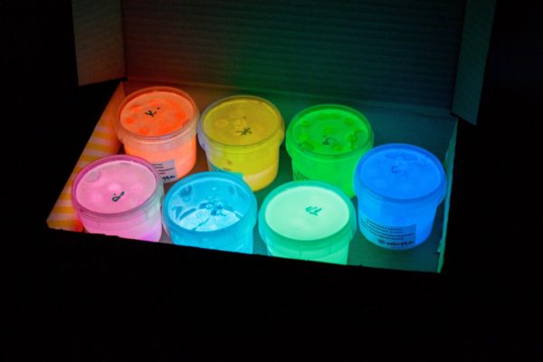 U bent misschien geïnteresseerd in:Het voordeel van de fosfor- en lichtgevende verf is dat deze na het drogen geen residu achterlaat op kleding en lichaam. Het product is veilig en is niet schadelijk voor mens en dier. Je kunt het kopen in een bouw- of gespecialiseerde online winkel, of het zelf doen.