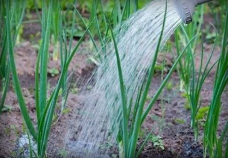 - Na het planten van de uien wordt regelmatig water gegeven totdat de bol begint te rijpen. Als er vóór dit punt een gebrek aan vocht is, is het nutteloos om te wachten op een goede oogst, een overmatige hoeveelheid vocht op het moment van rijping zal leiden tot een slechte opslag van uien.