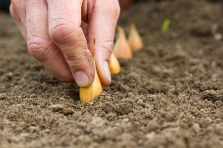 Het planten van uien in de winter in de open grond