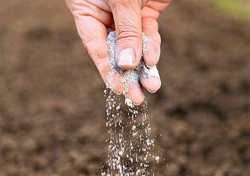 Krijt heeft een natuurlijke oorsprong en wordt vaak gebruikt als een desoxidatiemiddel. Het is verspreid in het voorjaar in de sneeuw. Smelt water, dat zijn korrels oplost, draagt ze naar de grond. Het kan jaarlijks worden gebruikt, maar in kleine doses om verzilting van de bodem te voorkomen.