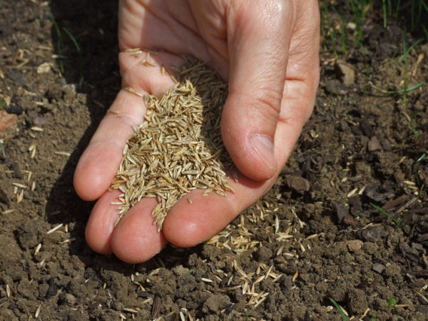Kan ik in de regen planten? Het is beter om bij droog weer zonder wind te zaaien, dan zal het gras goed wortel schieten. Aan de vooravond van de bovenste laag overvloedig bewaterd. Meng het zaad met zand in een verhouding van 1: 1, strooi rond de hele omtrek, eerst langs, dan over. Nadat de zaden zijn aangebracht, wordt de grond aan de oppervlakte losgemaakt met een hark en vervolgens licht verdicht met een rol, een dunne laag zwarte grond of turf wordt aangebracht voor mulchen. Uiteindelijk moeten ze worden bewaterd uit een kleine sproeier.