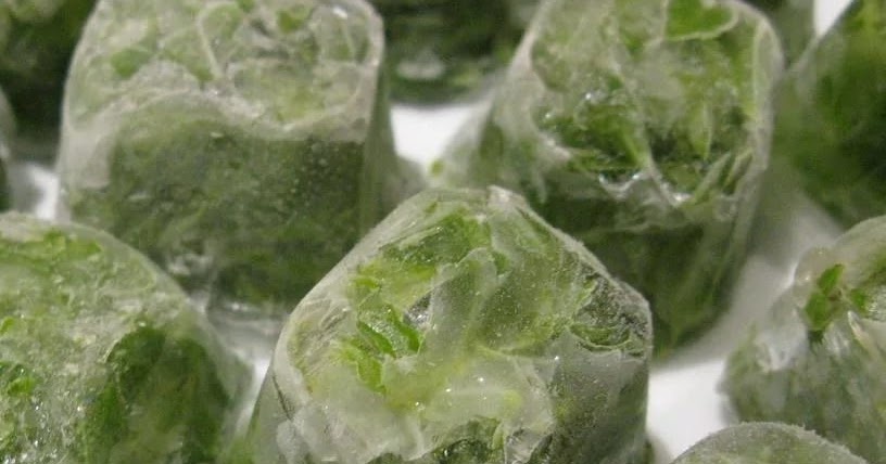 - Om de greens in de vorm van prachtige ijsblokjes te bereiden, fijngehakte grondstof in de vormen, giet warm gekookt water in de uitsparingen van de container, laat afkoelen en zet in de vriezer.