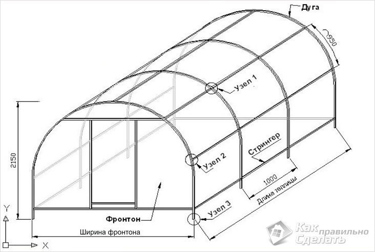 Op de video-instructies voor dit materiaal kunt u in detail de tekeningen en andere punten zien over het maken van een polycarbonaat-kas met uw eigen handen uit het profiel. Maar verder in de tekst beschouwen we de belangrijkste belangrijke punten, die vaak niet in videoverhalen worden behandeld, maar die een belangrijke theoretische en praktische betekenis hebben.