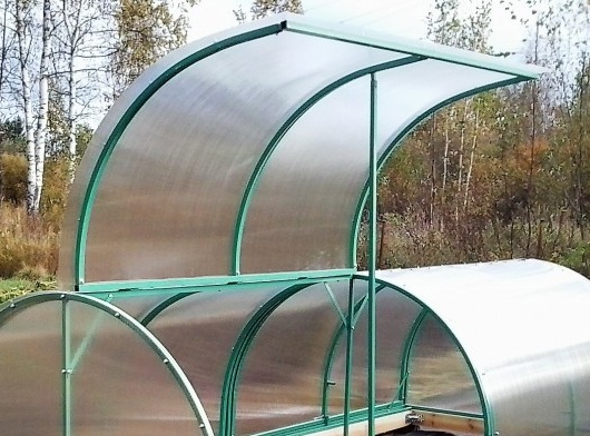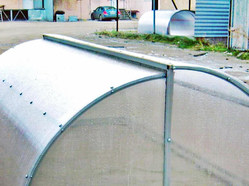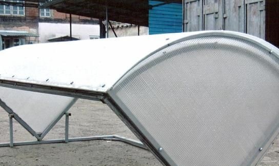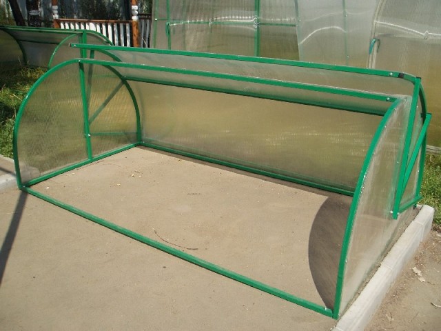 "Brooddoos" - een ontwerp in de vorm van een gebogen boog, het open kas. Het wordt vaak gemaakt van een plastic profiel. Het leent zich goed voor verwerking. Bij zelfproductie wordt het materiaal gesneden met een conventionele ijzerzaag. Voor het omhulsel worden polycarbonaatplaten gebruikt. Het frame is bekleed in overeenstemming met zijn openingen. Wanneer u een afgewerkt model koopt, zijn alle onderdelen klaar voor installatie. Het belangrijkste is om ze correct te monteren, volgens de instructies.