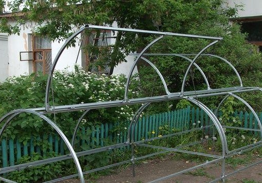 - versterk het frame door profielsecties in het midden van elke boog te lassen (kort en lang);