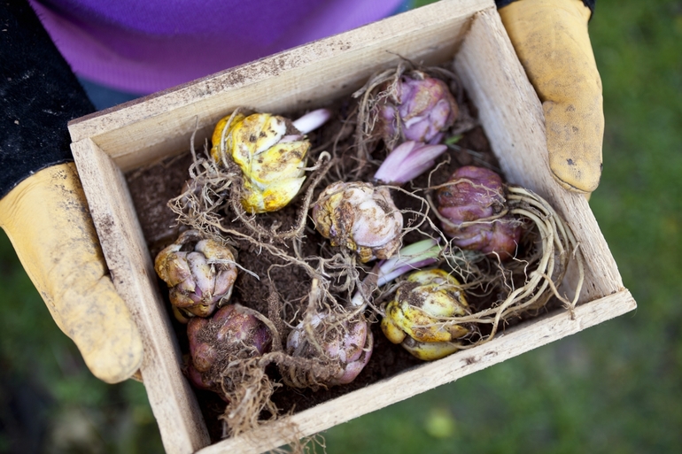 - Gegraven bloemen verplaatsen naar een opslaglocatie.