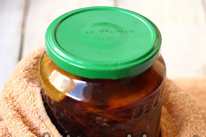 Koel onder een dikke handdoek of deken. Neem gekoelde blikken met ingemaakte pruimen naar de kelder of bewaar in de koelkast tot de winter.