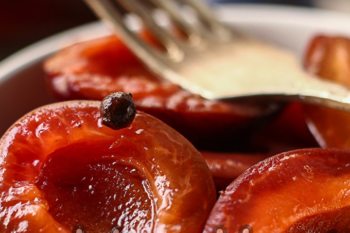 Pruimen zijn pikant en aromatisch, hun zoetzure smaak wordt benadrukt door pittige kruiden. Serveer als snack voor vleesgerechten of plakjes kaas.