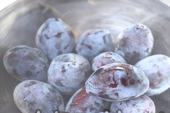 Voor het beitsen is het beter om bijna gerijpte pruimen te kiezen, en van zacht fruit is het beter om jam, jam of pastille te bereiden. Sorteer de pruim voorzichtig, doe in een diepe kom en giet koud water. Laat na een half uur het water weglopen en was de vruchten goed, haal de staarten eraf.