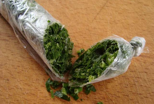 Verder, als je boter gebruikt, moet je de bladeren met boter mengen en in mallen schikken om in te vriezen.