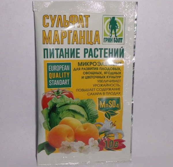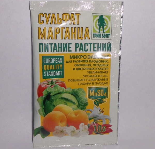Mangaanmeststoffen zijn nodig voor redoxprocessen, goede fotosynthese, waardoor de hoeveelheid suiker in tomaten en bieten toeneemt en het zetmeelgehalte in aardappelen. Mangaansulfaat wordt met een snelheid van 1 kg per 100 m² op de grond aangebracht.