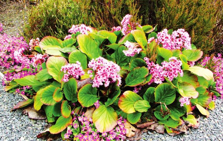 Hij zal niet alleen genieten van bloemen, maar ook van rondachtige grote bladeren met een diameter van meer dan 30 cm. Onder de bomen in de boomgaard zal hij goed groeien, maar houdt ook van zonnige plaatsen. De grond mag niet vochtig zijn; er kan al in mei van de bloei worden genoten. Bloemen worden weergegeven door paarse bladeren op een stevige steel. Winter snoeien van bladeren is niet vereist.