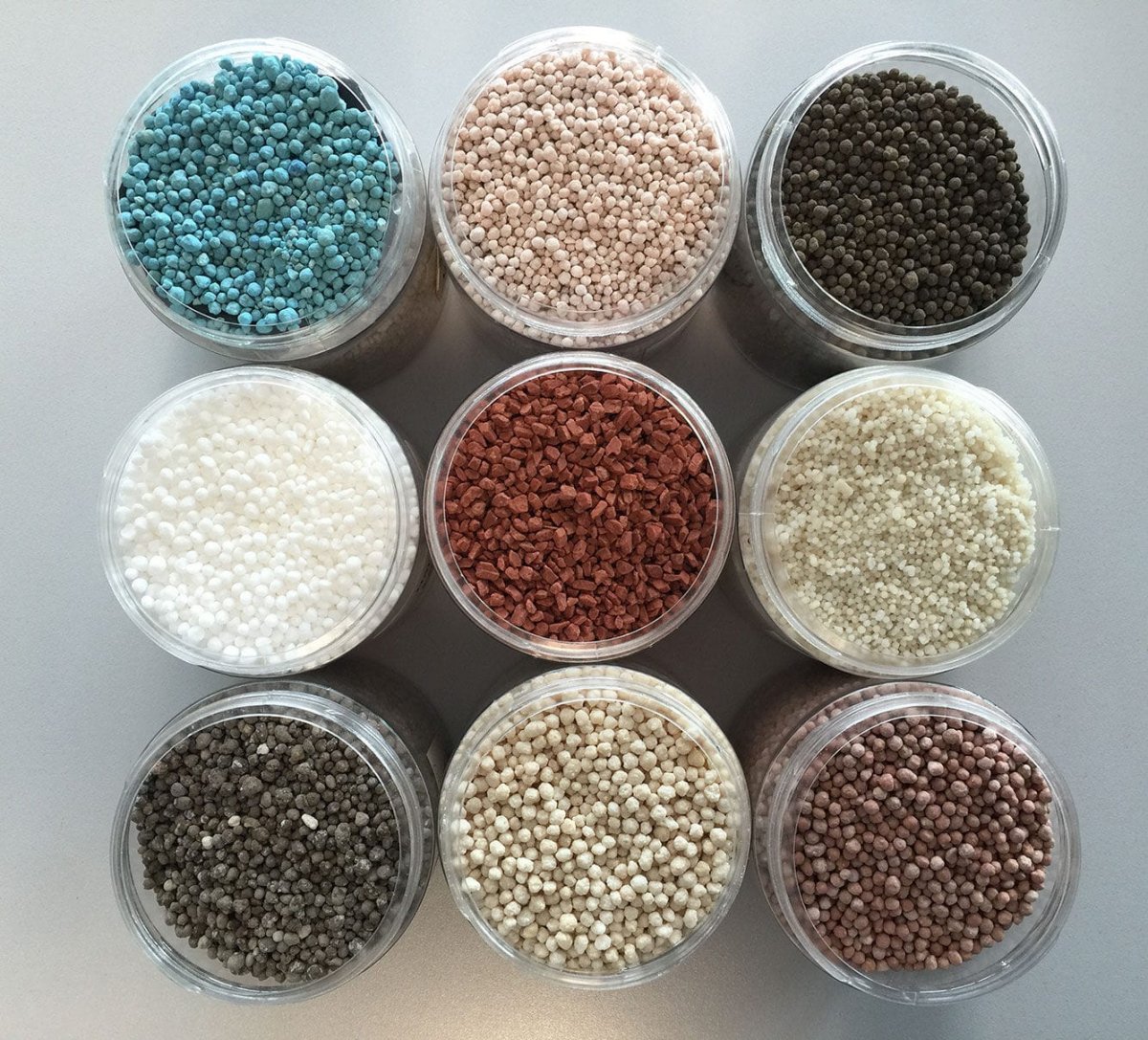 De meststof ziet eruit als een grijs poeder. Het bevat: