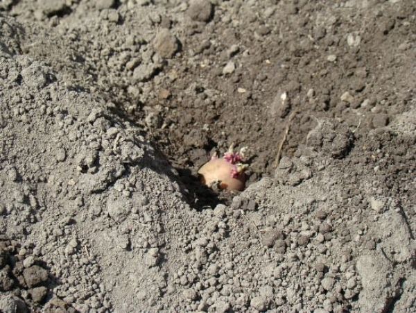 Planten. Knollen van het ras Colette worden geplant in gaten of groeven met de verplichte toevoeging van een handvol houtas en humus (0,5 liter). De zaadplaatsingsdiepte op lichte grond is 12 cm, op leem- en veengrond 6-7 cm. 35 cm blijft over tussen knollen en 60-70 cm tussen rijen.