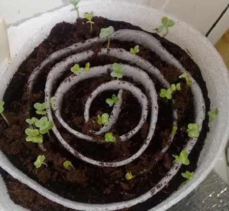 We maken er een rol van en sturen het op in een zak melk. In vochtige en warme omstandigheden vindt de kieming van het gewas sneller plaats dan bij traditioneel zaaien. Maar papier bevat geen voedingsstoffen en moet extern worden toegevoegd. Gedurende de tijd die nodig is voor het verschijnen van twee of drie bladeren, is het noodzakelijk om twee bemesting met humuszuren uit te voeren.