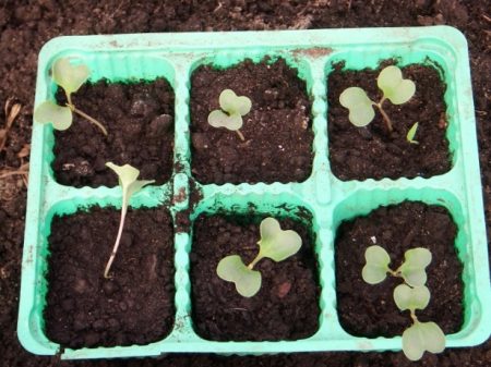 Je moet kool duiken in een duidelijk gedefinieerde staat van de spruit. Knijpen wordt alleen uitgevoerd in gezonde exemplaren in aanwezigheid van ontwikkelde zaadlobbladeren.Zaailingen met een of twee echte bladeren kunnen de interventie al naar hun wortelstelsel overbrengen. De aanpak kan anders zijn: in de algemene en afzonderlijke containers, in turfbekers en onder de film.