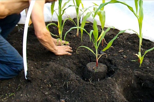 Ondanks een dergelijk onstabiel klimaat wortelt maïs behoorlijk goed en kan vrucht dragen tot de eerste vorst. Dit komt door de dikke bladeren die de kolven beschermen. Zaailingen in volle grond kunnen het beste half mei worden getransplanteerd. Maar let nog steeds op de gemiddelde dagelijkse temperatuur en de temperatuur van de aarde: deze mag niet onder de + 12 graden komen.