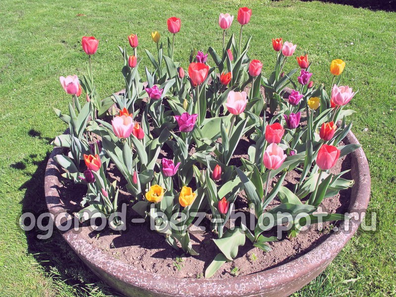 Voor de ontwikkeling van het wortelstelsel van tulpen heeft u minimaal drie weken nodig, gedurende welke de grondtemperatuur niet lager of hoger mag zijn + 8 ... 10 graden.