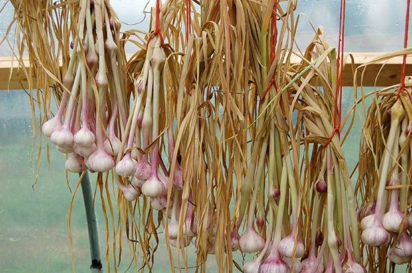 De minimale droogtijd is 2-3 weken. De ruimte waar de knoflook wordt bewaard, moet goed worden geventileerd.
