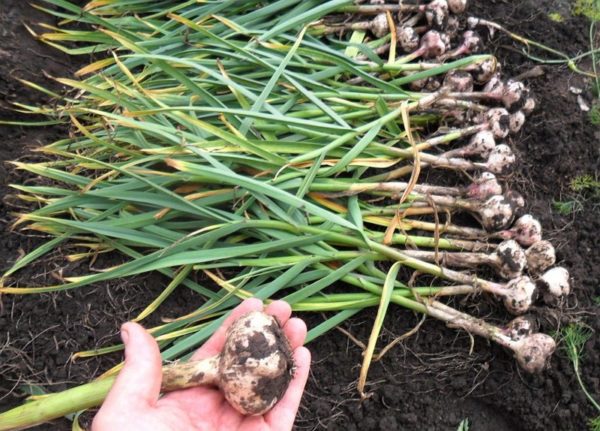 - Het oogsten moet bij droog weer gebeuren. Maar als het regent en er is geen manier om te wachten op droog weer, na het graven, moet je de knoflook goed drogen. Voor het drogen moet je een goed geblazen en beschermd tegen regen gebruiken.
