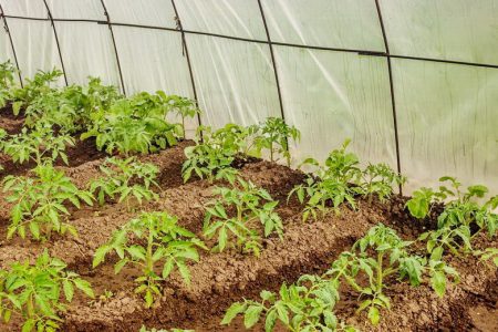 De timing van het planten van tomatenzaailingen in een kas in de buitenwijken