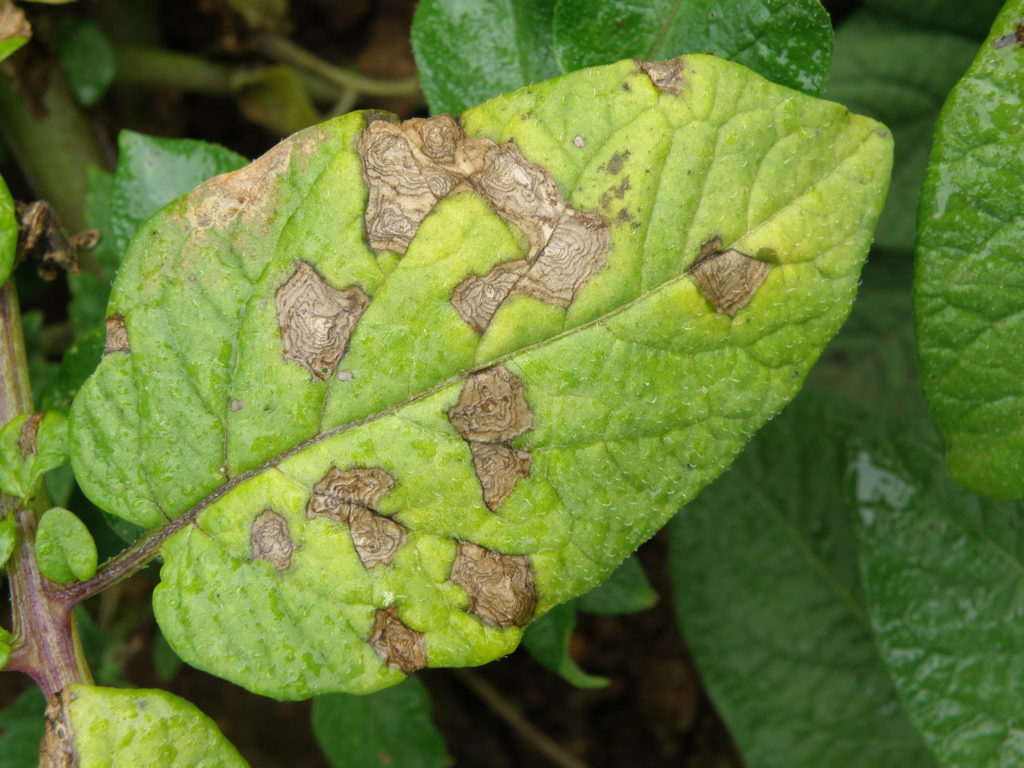 De veroorzaker is de schimmel, sporendragende schimmel Alternaria solani. De ziekte wordt anders genoemd: macrosporiose, alternariosis, droge, zonale of bruine vlekken. De eerste symptomen zijn te zien bij tomaten die na het planten nog steeds niet sterk zijn; in sommige gevallen manifesteert de ziekte zich later wanneer de plant al fruit heeft. Als de behandeling niet tijdig wordt gestart, zal de schimmel geleidelijk de hele struik vernietigen. Macrosporose resulteert in een verlies van 60% van het gewas.