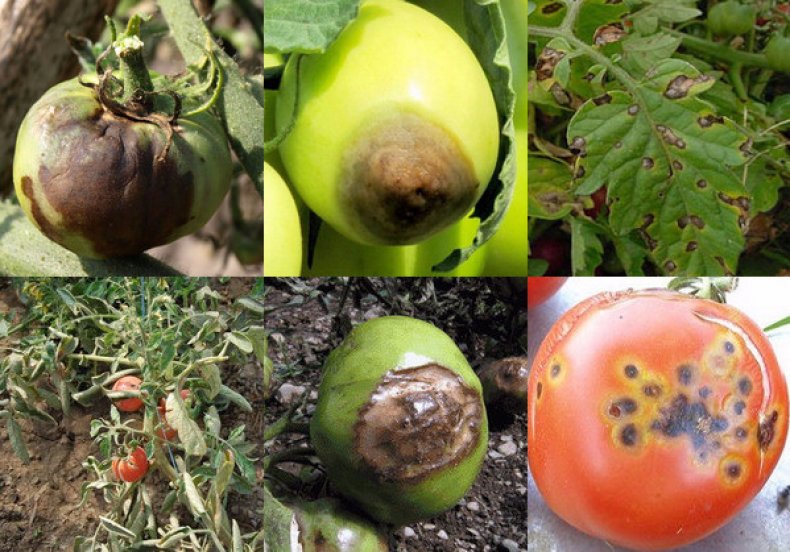 Op bladstelen en stengels, vlekken rinkelen, met een duidelijke contour, bedekt met een fluweelachtige, grijze coating, ze groeien zeer snel en worden diep. Het metabolisme van de plant is verstoord, de struiken ontwikkelen zich niet, tomaten zijn vervormdze smaken slecht. De laesies op de vruchten zijn geconcentreerd bij de stengel, ze zijn depressief, waterig, de huid op de plaats van de laesie is bleek. Geleidelijk wordt de vlek groter, krijgt een bruinzwarte kleur, soms verschijnt een licht grijze coating. Tomaten vallen, hebben geen tijd om te rijpen of vice versa, ze spugen van tevoren.
