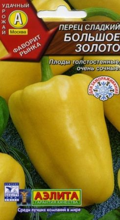 De variëteit is midden vroeg. Het kan zowel onder film als in open grond worden gekweekt. Fruit bevat een verhoogde hoeveelheid vitamine C. In biologische rijpheid krijgen ze een verzadigde gele kleur met een oranje tint. Fruitgewicht tot 220 g, wanddikte tot 8 mm.