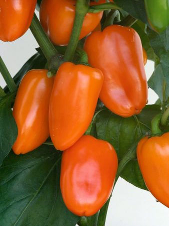 Ze zeggen dat vroege variëteiten van peper geen specifieke smaak of geur hebben. Misschien, maar geen vertegenwoordigers van de oranje groep. Ze worden allemaal gekenmerkt door een heldere kleur, dikke vlezige, sappige wanden, verhoogde productiviteit en rijke smaak.