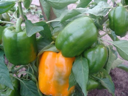 Ik hou niet van experimenteren. Ik probeer alleen die gewassen te verbouwen die al lang bekend en getest zijn. Maar dit jaar heeft de schoondochter nieuwe variëteiten van peper geplant. Ik vond het erg leuk. Als je ze niet groen kiest, worden ze eerst geel en daarna fel oranje. Ze smaken zelfs anders. Ik zou zo'n schat niet willen besteden aan conservering, maar alleen vers willen eten.
