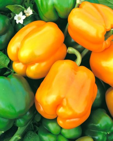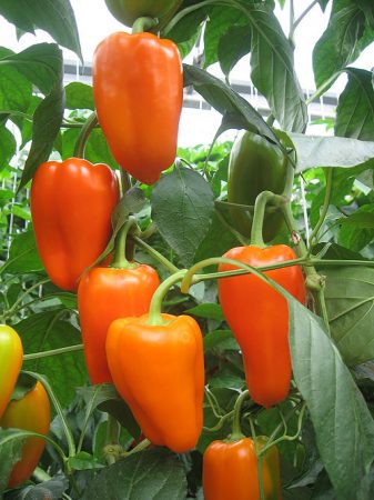 Oranje paprika's zorgen voor een zonnige sfeer, zowel op het tuinbed als op de tafel, en hebben ook veel baat bij het menselijk lichaam. Het heeft veel voedingsstoffen, vitamines en mineralen. In vergelijking met andere variëteiten heeft het een aanzienlijk hoger gehalte aan kalium, fosfor en rutine en in groen is het een uitstekende manier om kanker en de vorming van tumoren te voorkomen.