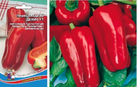 Zoete Denis-paprika's wortelen goed in kassen van polycarbonaat. De eerste zaailingen van de cultuur kunnen worden waargenomen na 90 dagen vanaf de datum van het planten van groenten. Vruchten worden groot en krijgen een rijke donkerrode tint als ze rijpen. Rijpe Denis-paprika's zijn langwerpig. Met een totale struikhoogte van 70 bereiken de vruchten een afmeting van 18x10 cm en een gewicht van 400 g. De wand van de groente is dicht en sterk, de dikte is 9 mm. Een verscheidenheid aan paprika's Denis is niet bang voor tabaksmozaïek, de cultuur is gestaag bestand tegen de infectieziekten die kenmerkend zijn voor tuinplanten. Denis is een zoete variëteit die ideaal is om groenten te gebruiken om verse salades te maken.