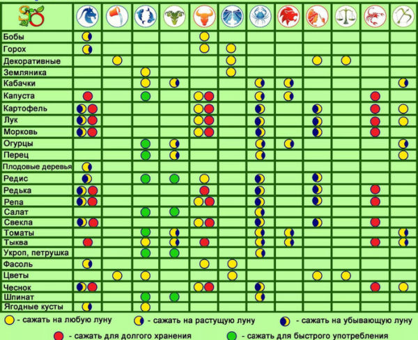 De houdbaarheid en hoeveelheid voedingsstoffen in de knollen hangt ook af van de sterrenbeelden waardoor de maan passeert. Elk teken in combinatie met een bepaalde maanfase kan de kwaliteit van fruit en hun verdere opslag actief beïnvloeden: