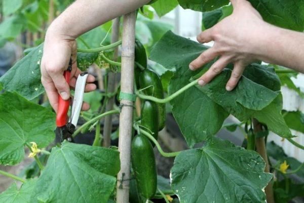 - als een vroege oogst nodig is, zullen de ranken van komkommers het rijpingsproces van de vruchten alleen maar vertragen, waardoor ze voedingsstoffen wegnemen;